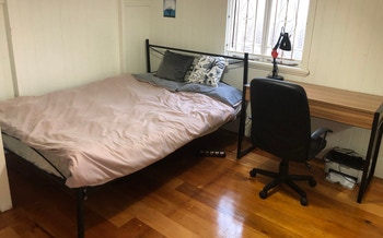 As you can see in the floor plan, there is a seperate master bedroom with ensuite and balcony on the top level of the home that will be for rent. This room has a double built in cupboard, reverse cycle air conditioning, private balcony, queen bed ensemble, bedside tables, lamp and desk with chair. The common areas include a lounge room and kitchen on the lower level that is shared and is completely fitted out with kitchen and dining wear including air fryer, coffee pod machine, rice cooker, convection oven, microwave, fridge, pots and pans, cutlery and crockery ect. The apartment complex also has a pool, sauna, gym, study space and large garden area with bbq and outdoor dinning. Heaps of restaurants and facilities attached to the building including a Woolworths, Asian grocer, discount store, pharmacy, pathology, GP and more. Public transport easily accessible- bus stops across from the lobby and QUT (2 streets over). Quick uber into the city (approx 7-10 mins).