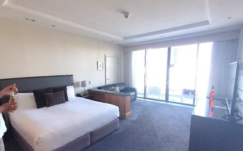 For rent is the master bedroom with ensuite clean and tidy room with ceiling mount tv built in wardrobe with mirror door bed can be supplied or bring your own power bill is shared with 1 male flatmate rent is 350 ..power is about 12 dollars a week