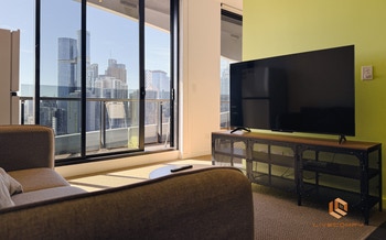 The livings space: open living kitchen space with a beaut TV and soundsystem
