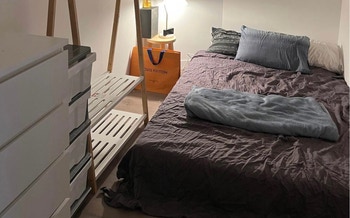 • Master room with ensuite, small double bed, built-in wardrobe, bedside table, study desk and chair