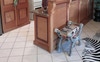 The ceilings are 10 foot and the room is 4x4 mtrs, with wood ceiling beams and wall to wall carpet.